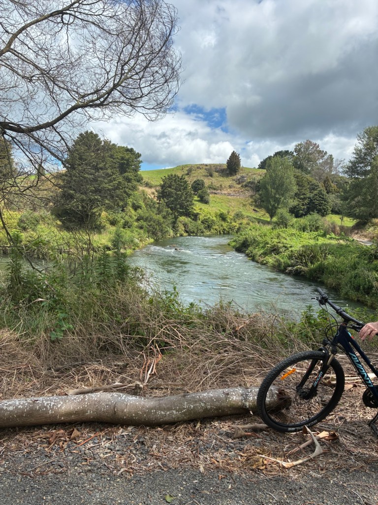 Rotorua is often known as the cultural heart of NZ and this will be our destination today. We start with a cycle through the beautiful Karangahake Gorge approx 16-17 km. The saying “All the gear and no Idea” comes to mind when before I even start my day or get on my bike I catch the front of my leg on one of the peddles! It was like a geezer and broadly a big blood egg was forming on my leg, I thought my day was over, however, thankfully I got it elevated and my trusty Fio having sprained her ankle on her first day in Sydney a week or so ago had sticky strapping with her, so we were able to put hankies directly on the wound and strap the impacted points – all sorted and good to go. Yes, it was flipping sore, what a plonker!