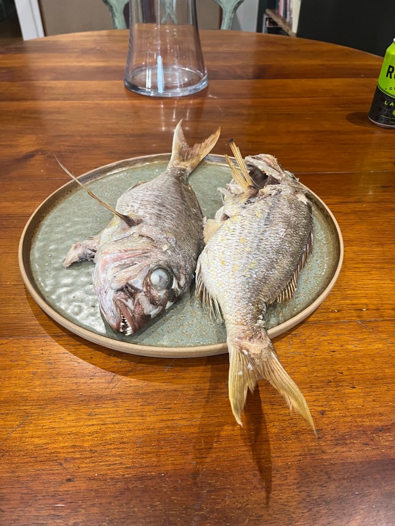 The journey back was much more like the thing only took me 2.5 hours and Ben was cooking Red Snapper two different ways one Lemon based and the 2nd Asian based with 3 different amazing salads with sous chef Lu under command lol 🙂 both amazing btw. A- MAZ-ING! How lucky am I? And while the snapper does not look happy they did not die in vain they were delicious.