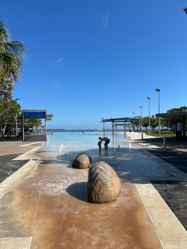 It so did, I was up and out early, again the heat and humidity from early morning is quite something. Cairns is a relatively small city, broadly on a grid and surely to goodness even I can manage this without getting lost, the hotel despite all its faults seems to be in a pretty safe area and was a very short walk to the promenade alog the waters edge, so beautiful. No swimming because of the Crocs here! It wasn’t long until I came across the man made Lagoon area, so nice (pics below).