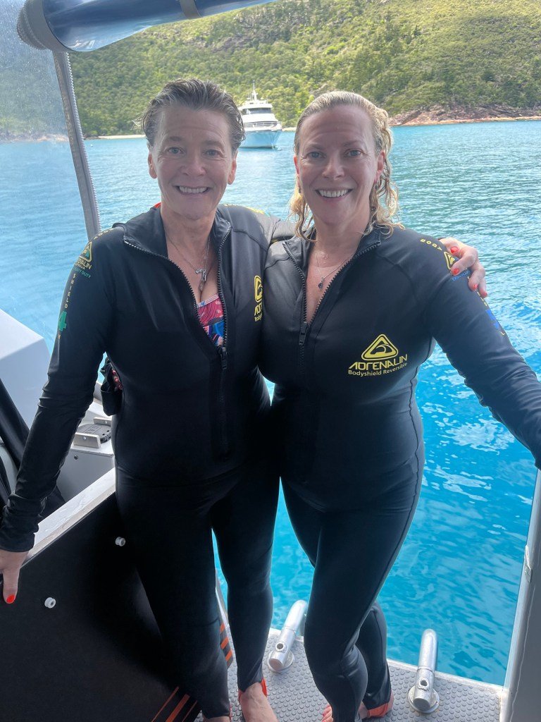 We are still in stinger territory and so we need to wear the delightful stinger suits, there will be an opportunity to do some paddle boarding. Will I at last manage to get up and stay up today?