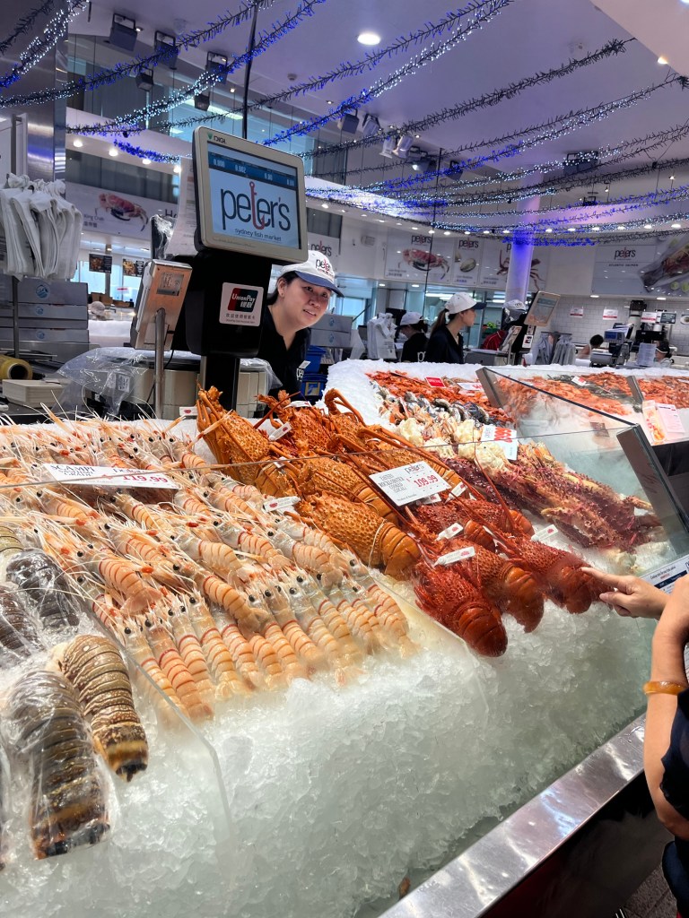 We get off at the 2nd Stop from Central to go into the Fish market, my expectations of a fish market were exceedingly low, I could not have been more wrong it was an eye feast and fabulous, just such a buzz around the place, we had lunch in the Boat Shed, we choose 2 mornay Oysters and half a lobster from Peter’s and then ordered crab claws from The Boatshed and ate the lot in there …..YUMMY! The choice was incredible and some fairly scary options!