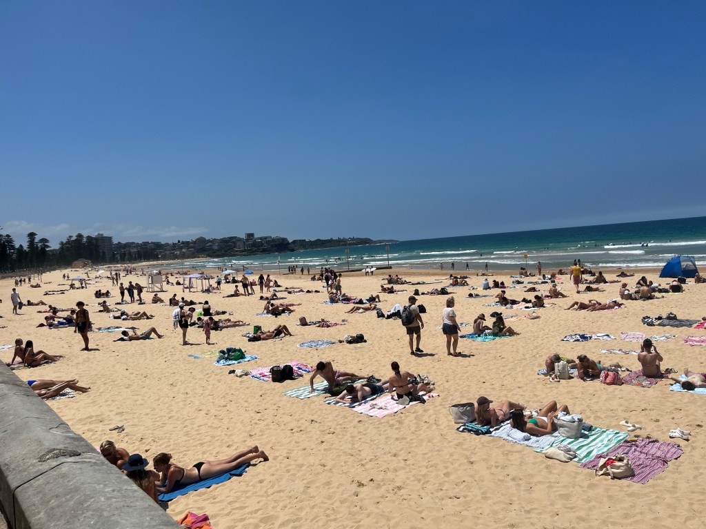 The weather forecast was for rain, however, has changed to 10% chance so we decide to postpone our visit to the Taronga Zoo (Be careful it turns out their are two Zoo’s in Sydney, if you are booking make sure it is for the one you want to go to) until Thursday. We have heard good things about Manly beach and decide to have a lie in, no alarms and head there late morning and spend the afternoon on the beach.