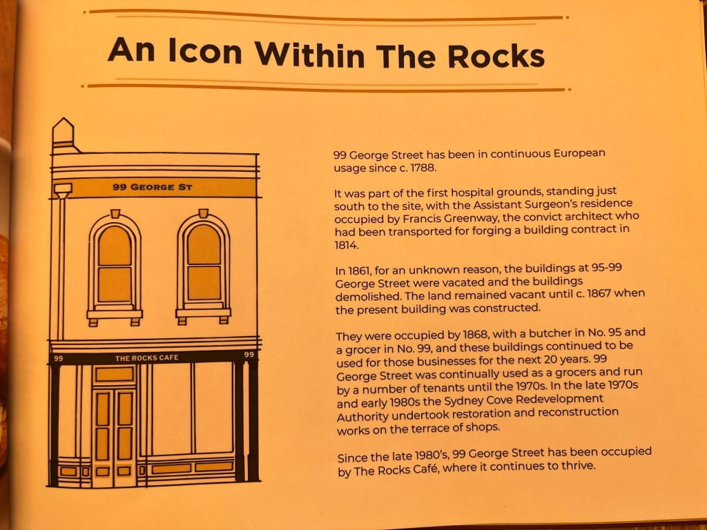 We potter about and eventually hop on the train to Central Quay, we walk towards the Rocks and choose a very old Cafe for lunch.