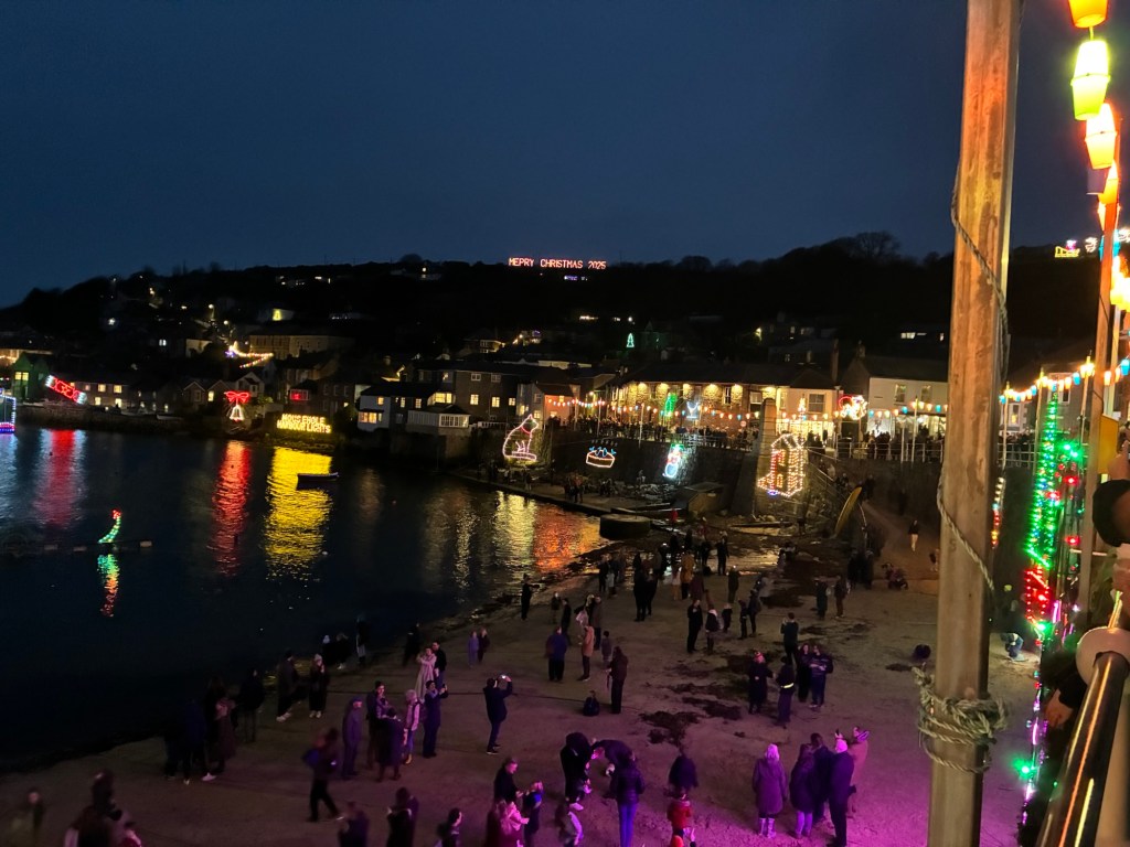 Mousehole, pronounced “Mauzall”, is a lovely village in Penzance which we had stayed in for a few days before Sarah & John’s wedding is famed for it’s Christmas lights, and so, Christina had booked us into a nice restaurant for an early dinner, the food was gorgeous, before the “daily” evening big switch on of lights, which were really good, the pics don’t do them justice. Cornwall have an array of male voice choirs and there were some there singing on the harbour, what a beautiful sound.