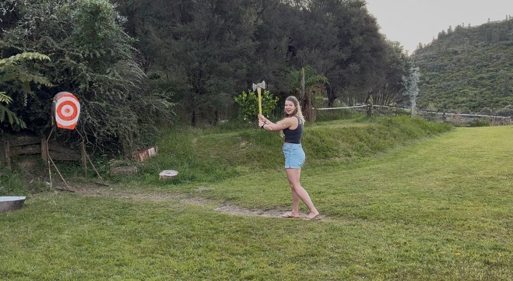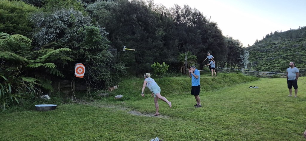 I knew I forgot something! Oh yes …..the after dinner Axe throwing: not everyone had a go, we got a demonstration from Dan who just happened to be ther – bullseye first go of course, James went next and had clearly had done this before as well, whilst not as initially accurate as Dan he had this sussed, Fio and Jeff, were determined to get that axe landed and both eventually got bullseye’s, I, however, despite taking some chunks out of the board could not get it to stick arghhh!, only a few had a go, however, everyone supported, it was good fun if not a bit scary to watch as you can see below by Jeff’s face!