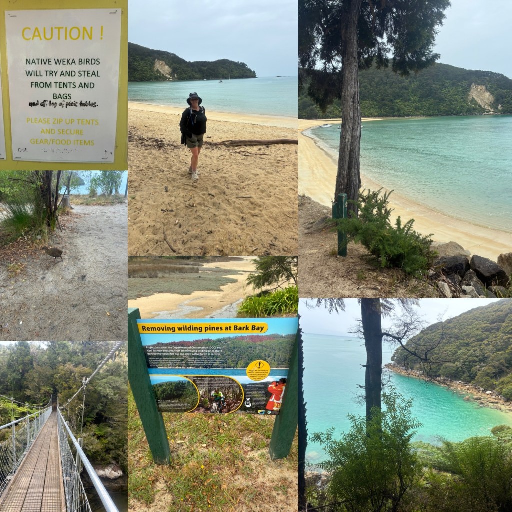 Onwards to Abel Tasman, James has told us to all be on the look out for a white heron they are extremely rare and he has only ever seen 5 in his life and round the corner we came and I said, is that one? I think he thought I was joking but there it was and so we came to a very quick halt and all got out, his excitement was infectious. We meet a couple with huge cameras, the man had been trying to see one of these for 25 years and was booked on a white heron sanctity tour tomorrow lol and there he/she was. It is there only nesting place in NZ. We did feel hugely lucky to have seen one given James’s reaction.
