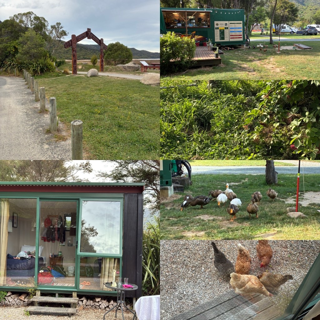 I am booked to go snorkelling with the dolphins and this is a 5am early start, it’s is a 25 min walk from where we are staying, in the dark to the dolphin centre. James is picking us up at 9.30 am to start our long full day travel to Abel Tasman. We receive our briefing, wetsuits, hoods, snorkelling gear & flippers and are transferred to the boat by bus, a short hop. There is a choice to swim with or watch “The Dusky Dolphins” on this tour. It says on the briefing that you need to have a good level of water confidence, and this is really just to do with launching yourself off the back of the boat each time the horn is sounded, there is little to no chance of sinking in these wetsuits, they are so bouyant. The snorkels are of an excellent quality and I managed not to choke for the duration of this experience which was a big win for me. Broadly, the interaction with the Dolphin’s is dependant on what mood they are in and we are asked not to try to touch them and to sing to them, swim in circles with them if we get the opportunity, plus dolphins like to eye ball you! I cannot begin to tell you how much I would love to be upload Fio’s go-pro video with sound as it is utterly hilarious, strangled cat/howling wolf comes to mind lol, HOWEVER, the dolphins clearly liked it, in fact, one “young couple” had some “jiggie” time listening to her to her dulcet tones as they past her! We had around 3-3.5 hours out on the water, in and out of the boat and it was such a lovely experience. The sea was pretty calm, however, despite taking ginger a few people felt a bit seasick, luckily, I am not one of them. I did loose part of one of my fillings unfortunately, luckily I am not in pain or that would have been a polava out here!