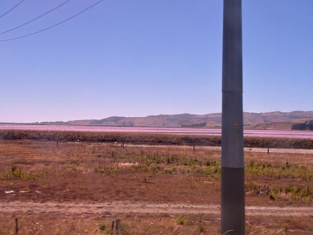 So, ten points for who can guess what we are doing for lunch today and why I am smiling? I will give you some clues avid readers……we travel through the Marlborough region! The sea water is pink here and in this area is associated with Lake Grassmere Saltworks. The pink to purple hue of the salt water ponds is a natural occurrence caused by microscopic green algae that change to a pinkish/red pigment in high salt concentrations, this process is intensified in the summer months.