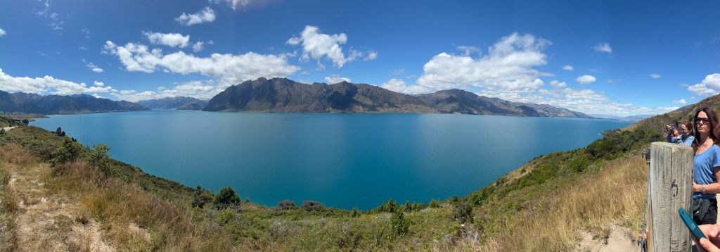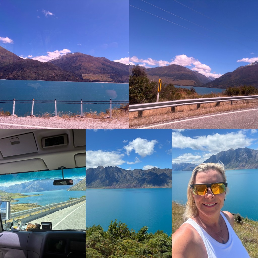 As we travel over the Crown range, the view over Queenstown is quite something, we are so high we are above the aeroplanes in the valley beneath. On we go through Arrowtown again with all the original buildings, again this was an old gold mining village, This is a huge area for Skiing in the winter and Coronet Peak is one of the big 5 in this area. We drive up Lady’s Mile which was the first road that women could drive a horse and cart up themselves!