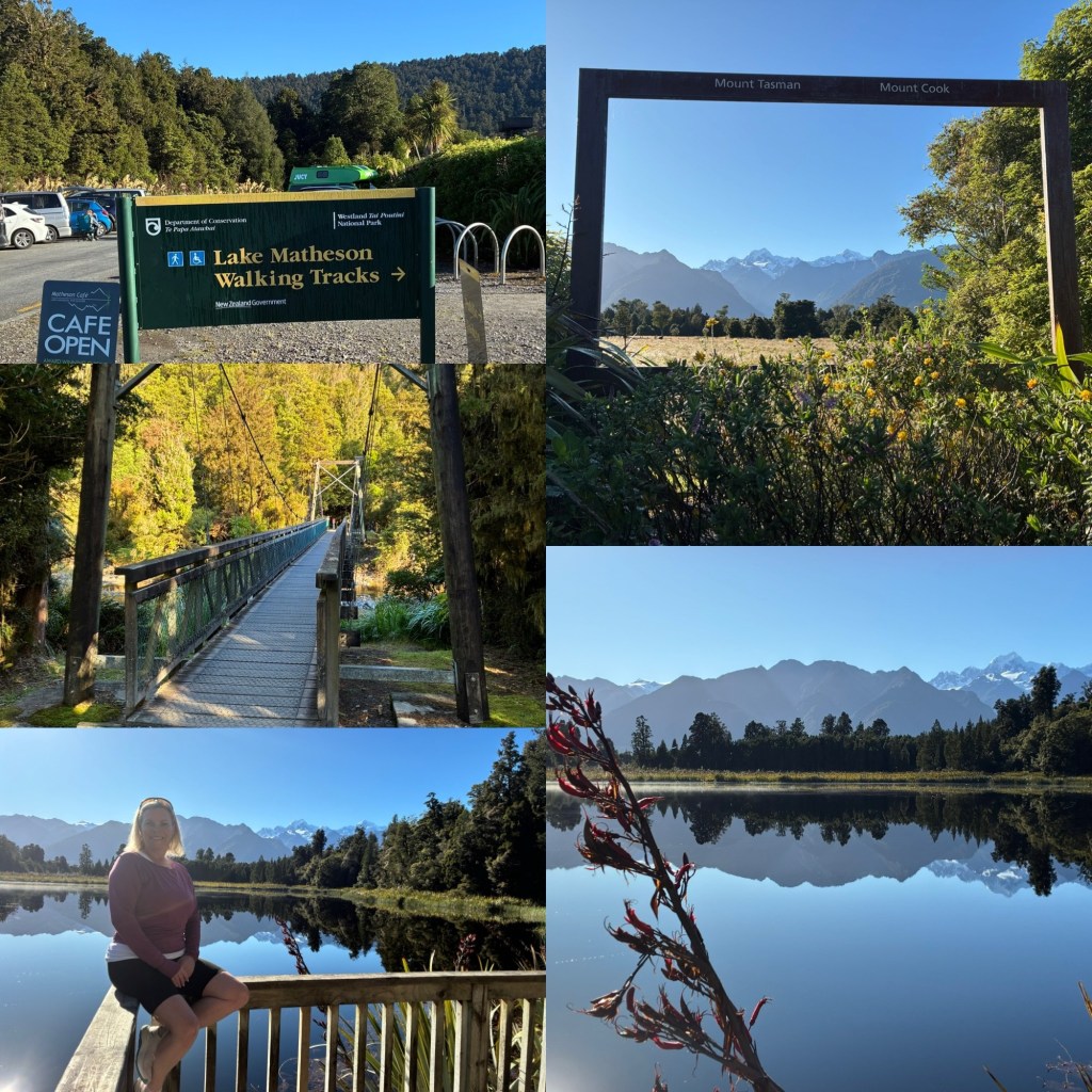 Kairaumati/Lake Matheson takes it’s English name from Murdoch Matheson who ran cattle on these Cook river flats in the 1870’s, and opened a store and butchers shop 15 km away at Gillespie’s Beach to service the mass of gold seekers. It is part of Westland Tai Poutini (place of the green stone) National Park.