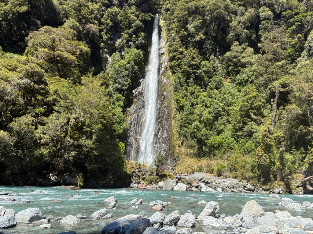 On this journey we get our first views of Mount Cook and Mount Tasman and go over the Haast Pass and out of the West Coast and the difference is instantly noticeable. Our 2nd stop of the day is at Ship Creek, which is a walk near the Haast River taking us through to Thunder Creek Falls which is aptly named, the water is very fresh and would certainly be breathtaking to get into so I passed on that one.