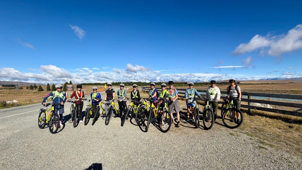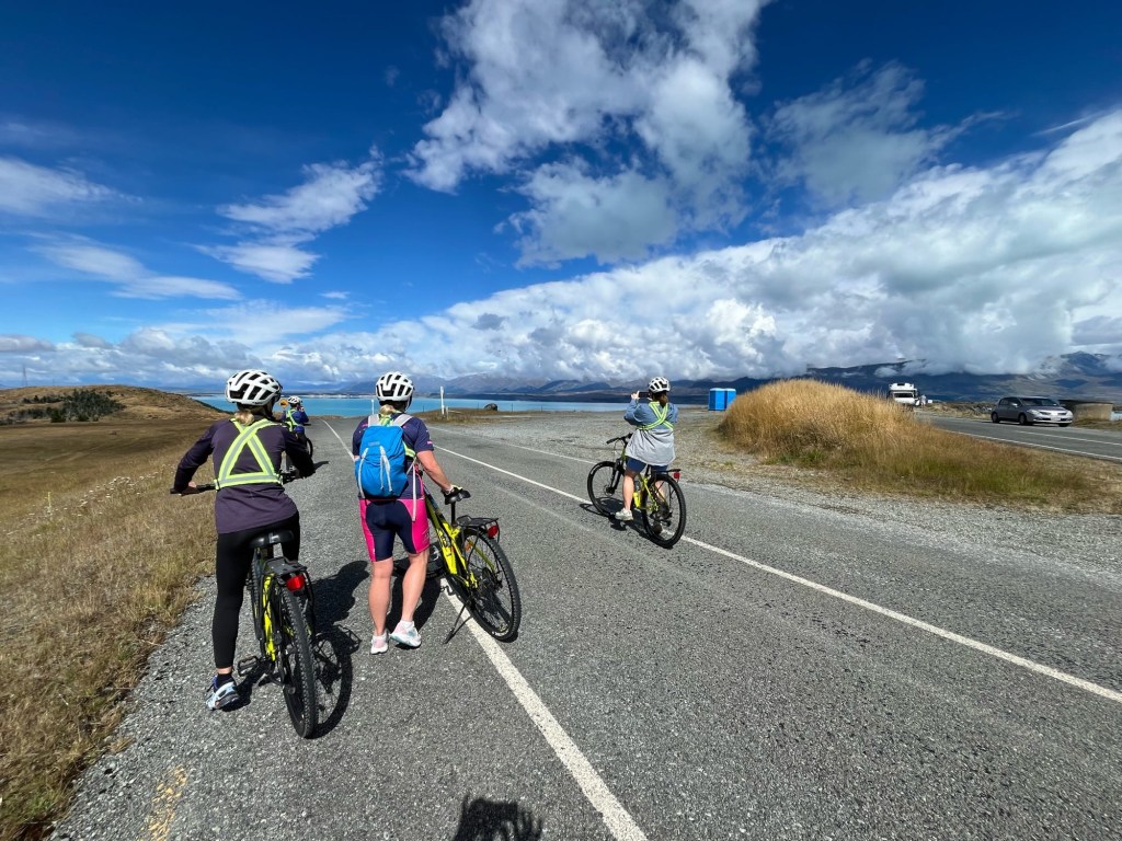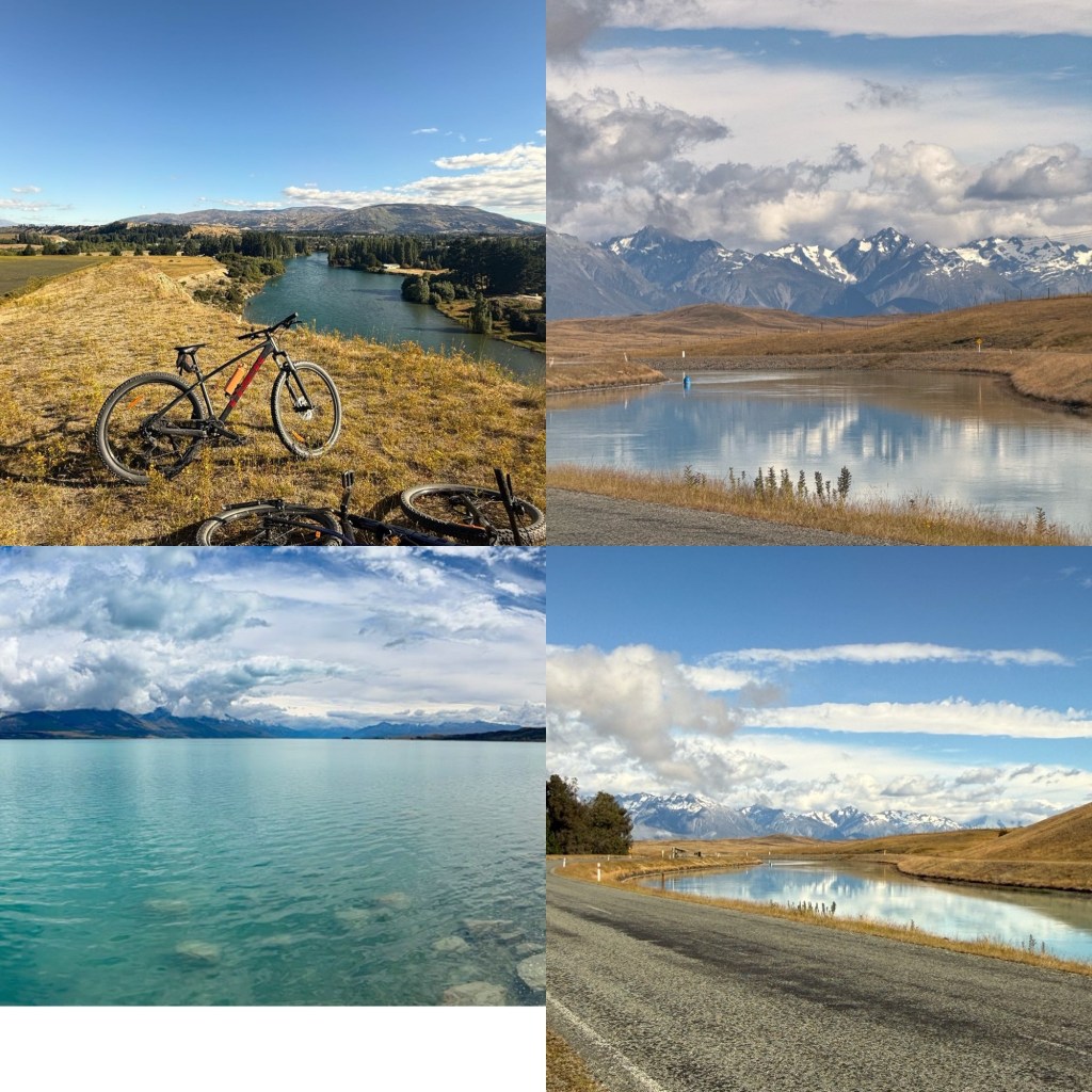 Well, after being so many beautiful places, no-one could describe Twizel as beautiful, I am rather under whelmed, broadly, it is a big Tintown literally a tin town of corrugated homes, which developed into a town when people who had come to work in 1968 for the hydroelectric workers and ended up being here years, putting roots down etc. It is located, in their words, “in the heart of the Mackenzie District”, otherwise described as the middle of no-where. It is a hub for fishing (mostly salmon some trout), kayaking, hiking and cycling the Alps 2 Ocean trail (of which we are doing part of in the morning), surround by five turquoise lakes.