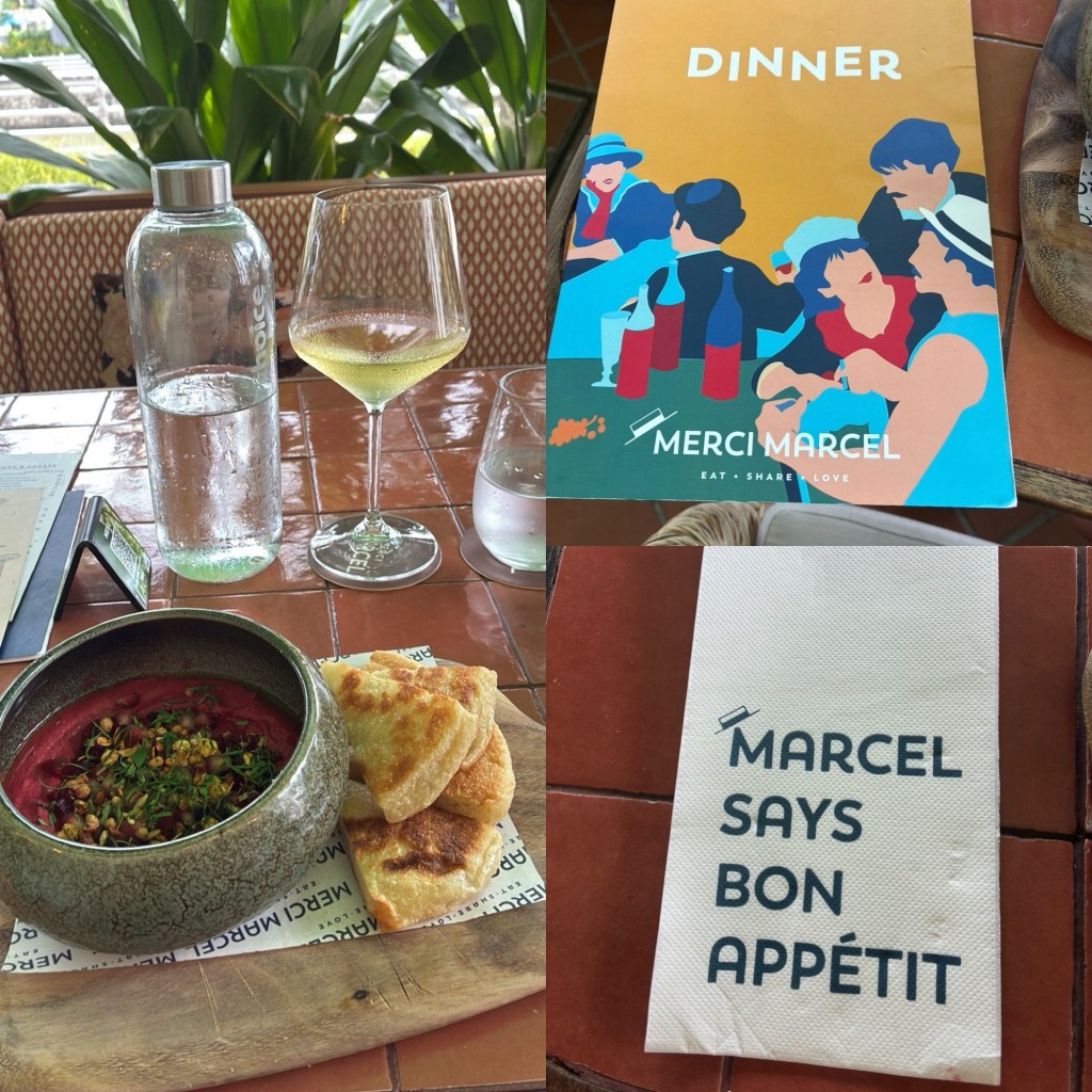 I met 2 lovely girls who were having “The Grand Platter”, the one I fancied! 1m long selection of French cheese & artisan charcuterie, fruits, nuts, beetroot hummus, herb tahini, Kalamata olives and breads! Where is Fio when I need her? I have a feeling Fio could manage this one on her own! We had a really nice chat and we all had a 2nd glass of wine and then I really needed to get going! It is time to get back to the hotel, shower, change and get to the airport.